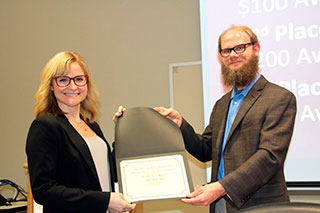 On March 18th, the Psychology Department hosted its annual Graduate Research Day (GRD), in which graduate students present research through oral and poster presentations. Following adjudication by faculty members, the following students were awarded the Eugenia and Russell Morcom GRD Excellence Award for best oral presentations: Briana Carroll (1st place; major professor: Rick Hyson), Berta Summers (2nd place; major professor: Jesse Cougle), and Jamie Quinn (runner up; major professor: Rick Wagner). The award was also presented to one student from each of five programs for their poster presentations: Ian Stanley (Clinical; major professor: Thomas Joiner), Sarah Wood (Developmental; major professor: Rick Wagner), Jacob Negley (Cognitive; major professor: Colleen Kelley), Kevin Elliott (Neuroscience; major professor: Frank Johnson), and Jessica Cascio (Social; major professor: Ashby Plant).